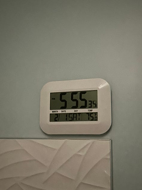 It became a fun game. Tiny moments of magic and manifestation. I can’t remember exactly when I started noticing angel numbers, but I know that I’ve never stopped clocking them. I relish in the “pokemon gotta catch em all” gamification of it, often sending timestamped proof to some friends that I got one and am thinking of them. Sometimes my friend Lily and I catch them at the same time, and it’s a little virtual treat to know that we’re both reporting live in real time despite being miles or cities apart.